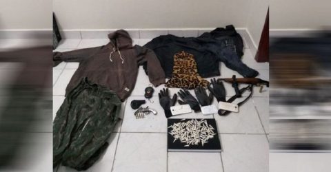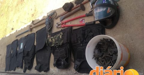 Durante a ocorrência foram encontrados um carro com placa fria, grampos, coletes balísticos, armas de fogo e ferramentas utilizadas em explosões a bancos.