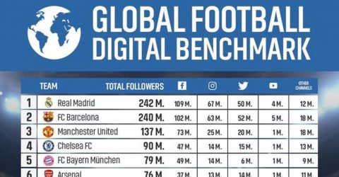 Site RESULT Sports divulgou estudo envolvendo as principais mídias sociais do mundo. Real Madrid lidera lista global, com 242 milhões de seguidores