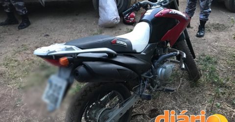 Os militares foram até o local e encontraram deitada ao solo uma Honda Bros 160 de cor vermelha ano 2018 sem placa