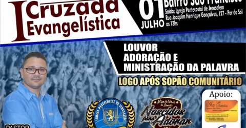A cruzada vai contar com pregação do pastor Clayton Alencar e animação do Ministério do Louvor Nascidos para Adorar.