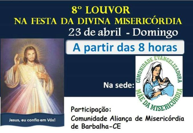A Comunidade Evangelizadora Mãe da Misericórdia realiza nesse domingo (23), a partir das 8 horas, o 8º louvor católico.