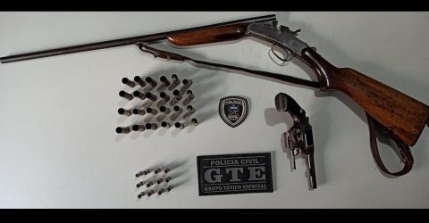 Um homem foi preso em flagrante na cidade de Riacho dos Cavalos portando uma arma de fogo, e outro homem foi preso na cidade de Brejo do Cruz, portando arma e munição