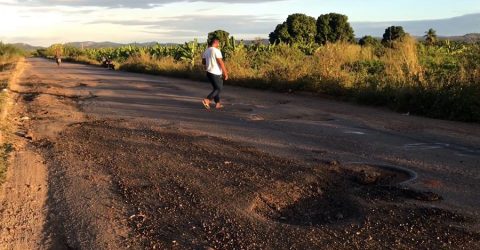 Anderson Felipe resolveu fazer um protesto solitário, mas que chamou a atenção nas redes sociais, para reivindicar melhorias na PB-380, conhecida como Rodovia da Produção, no município de Sousa