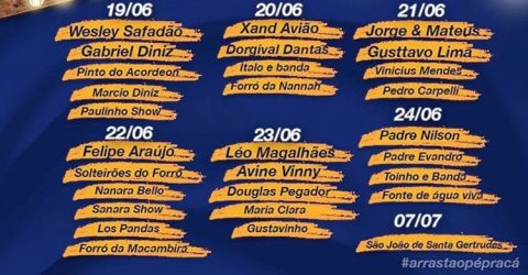 OFICIAL: Safadão, Aviões, Jorge & Mateus são algumas das atrações do São João de Patos
