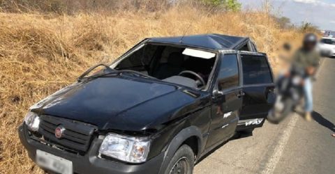 Mulher sai ilesa após carro capotar duas vezes na PB-400, próximo à cidade de São José de Piranhas