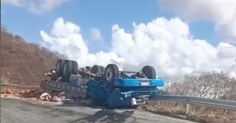 Em 3 dias, segundo caminhão tomba na Serra de Teixeira; veículo carregado com leite em pó seguia de Alagoas