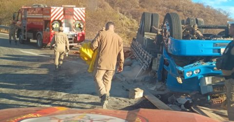Caminhão carregado de cimento e tijolos tomba e deixa duas vítimas fatais na Serra de Teixeira