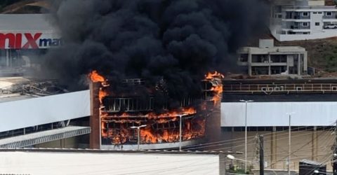 Vídeos circulam nas redes sociais e mostram o grande volume das chamas e da fumaça oriundas do local do incêndio