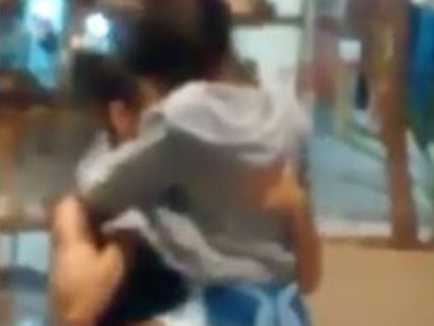 Um vídeo publicado na sexta-feira (21) na página do Facebook mostra o ato dos dois jovens. Os frequentadores passam e olham a cena.