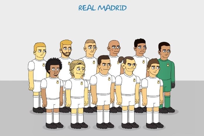 O artista gráfico Emilio Sansolini publicou em sua página desenhos das escalações de Barcelona, Real Madrid, Juventus e Manchester United como Simpsons