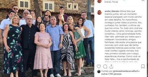 Na postagem, ele compartilhou a última foto em que o apresentador tirou ao lado da família.