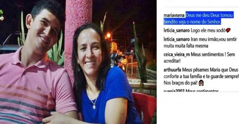 Em sua página no Instagram, Maria Sena, que é mãe de José Iran, postou sua última homenagem, após saber da morte do filho: