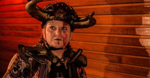 Com direção de Vinícuis Oliveira e performance de Valéria Pinheiro, TOURO {BULL} é uma peça coreográfica da Cia. Vatá (companhia de brincantes Valéria Pinheiro)