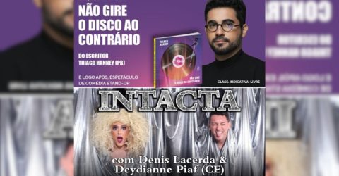O evento contará com o lançamento do livro "Não gire o disco ao contrário", do paraibano Thiago Hanney, e o espetáculo de comédia stand-up "INTACTA", com Denis Lacerda e a drag queen Deydianne Piaf