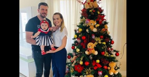 Cantora compartilha imagem com marido e filha: ‘Nosso primeiro natal’