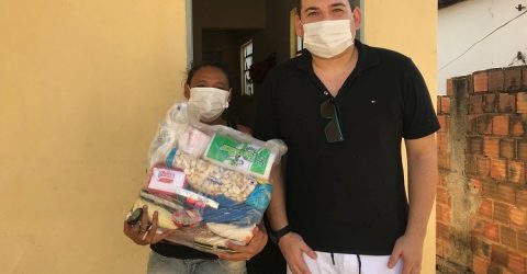 O cantor Vaqueiro Rei participou do programa Acústico Diário da TV Diário do Sertão e em seguida se dirigiu à residência da srª Maria Aureniê para fazer a entrega dos alimentos.
