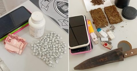 Na localidade, os policiais encontraram várias porções de maconha escondidas dentro de um vaso sanitário desinstalado, além de três balanças de precisão e dinheiro fracionado