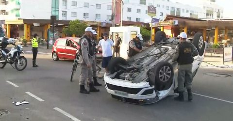 Homem bateu carro na traseira de um táxi e capotou. Ele foi encaminhado ao Hospital de Trauma de João Pessoa.