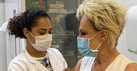 Transbordando de felicidade, ela aproveitou para alertar os seguidores sobre a faixa de idade que já pode receber o imunizante na capital paulista