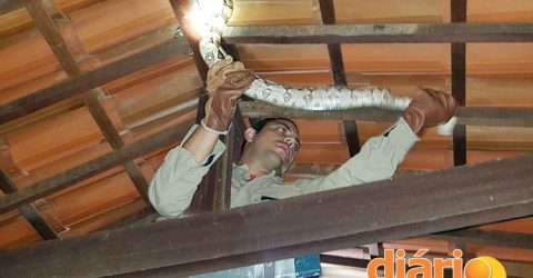 Uma equipe dos bombeiros esteve no local para capturar a serpente
