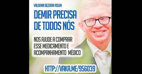 A família lançou a 'vakinha online' para realizar o tratamento de saúde de Valdemir Rolim pois o Sistema Único de Saúde não disponibiliza o medicamento e nem o tratamento mais indicado.