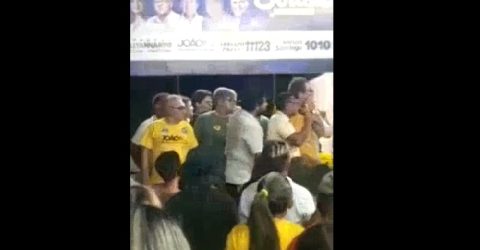 VÍDEO: Desconhecido joga ovo em comício com Fábio Tyrone na cidade de Sousa, mas não atinge políticos