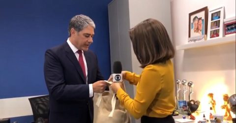 VÍDEO: Jornalista paraibana presenteia Bonner e Ana Paula com rede de São Bento e cachaça de Areia