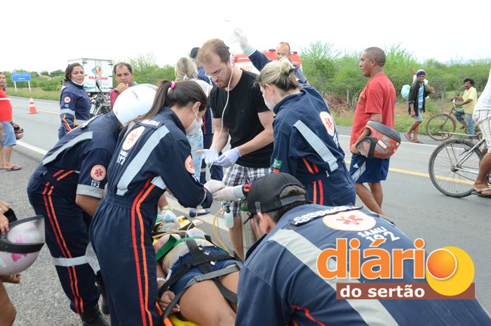 Um grave acidente de moto foi registrado na tarde deste sábado (18) na BR 230 próximo a linha férrea no município de Sousa, no Sertão da Paraíba e deixou três pessoas feridas, entre elas, uma criança.
