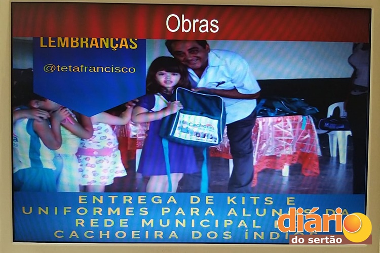 O odontólogo e ex-prefeito da cidade de Cachoeira dos Índios, Arlindo Francisco, mais conhecido como “Têta Francisco”, prestou entrevista ao programa Balanço Diário da TV Diário do Sertão e fez uma avaliação da época em que foi prefeito e afirmou que vai disputar novamente o cargo de prefeito nas eleições do próximo ano.