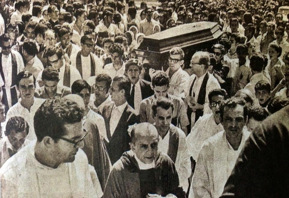 - Dom Heldêr durante o cortejo fúnebre silencioso de uma vítima da ditadura militar