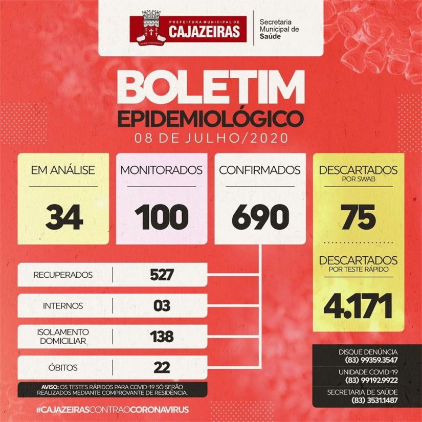 VEJA TAMBÉM: Secretaria de Saúde de Sousa confirma mais dois óbitos e registra mais 16 novos casos de Covid-19