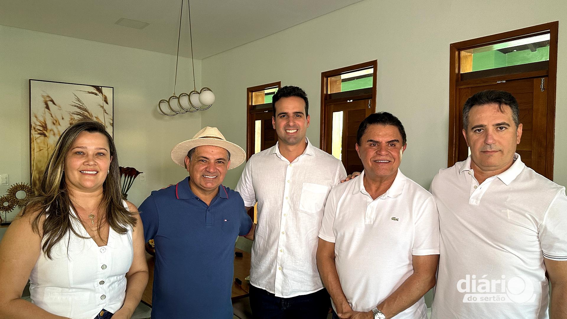 Primeira-dam, Larúcia Sá ao lado do seu esposo, prefeito de São João do Rio do Peixe, Luiz Claudino; Vice-governador, Lucas Ribeiro, Deputado Federal, Wilson Santiago e o vice-prefeito de São João, Regis Morais (Foto: Mathias Diniz/Diário do Sertão)